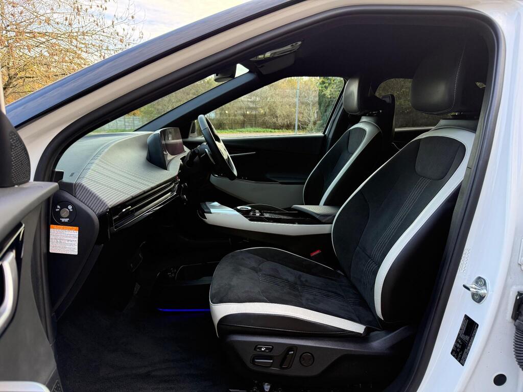 Stunning KIA EV6 GT-Line for sale with us at HR Arron – One Owner from New – VAT Qualifying (VAT Included in the listed price) – KIA Service History & comes with KIA MANUFACTURE 7 YEAR or 100,000 MILE WARRANTY until 26th August 2029 or 100,000 Miles…Full Spec is as follows:- Suede and Leather Two-Tone Interior, Heat PUMP, 12.3in Curved Driver Display Screen, 12.3in Curved Touchscreen Navigation, 12V Power Socket – Front, 19in Alloy Wheels – Black, 4x Front USB Charge Port, 6-Speaker Audio System, 60-40 Split Remote Folding Rear Seats, ABS – Anti Lock Braking System, Airbags – Twin Front, All-Round 3-Point Seatbelts, All-Round Electric Windows with Auto Up and Down Function, All-Round Height Adjustable Headrests, Ambient Lighting, Android Auto with Voice Control, Anti-Theft Alarm System, Apple CarPlay with Voice Control, Auto Dimming Rear-View Mirror, Automatic Defog System, Automatic Headlight Control, Black High Gloss Door Mirrors, Blind-Spot Collision Avoidance Assist with Rear-Cross Traffic Assist and Safe Exit Assist, Bluetooth with Voice Recognition, Body Coloured – Door Garnish, Body Coloured Exterior Flush Door Handles, Centre Console Cupholders, Centre Console with Open Storage Compartment and Armrest, Deluxe Door Scuff Plates, Drive Mode Select Driver Power Memory Adjustable Seat with Front Passenger Power Seat with 2-Way Electric Lumbar, Dual Automatic Air Conditioning, Dual LED Headlights with Adaptive Driving Beam, Dual Shell Horn, ECall, ESC – Electronic Stability Control, Electric Parking Brake with Auto Hold Function, Electrically Folding-Adjustable and Heated Door Mirrors with LED Indicator Lights, Engine Immobiliser, Engine Start-Stop Button with Smart Entry System, Forward Collision-Avoidance Assist – City – Pedestrian – Cyclist – Junction, Free 7-year Kia Connect – UVO, Front Cabin Light – LED…please check with a salesperson for accuracy – ALL VEHICLES ARE HPI CLEAR – Highly Rated by Autotrader for 2024 & 2025..All vehicle sales are subject to a 99 pound administration fee…car reg number CP22 MYW …date of reg. 26/08/2022..